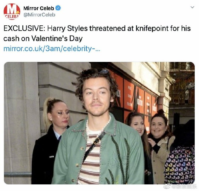 据了解,今年情人节晚上十一点左右,哈卷Harry Styles在伦敦遭遇一名男子持刀抢劫。该男子掏出刀威胁,向他索取现金,哈卷迅速将身上的现金交给了他,所幸抢劫犯没有伤害哈卷。